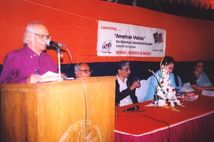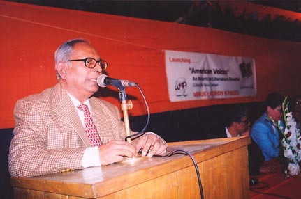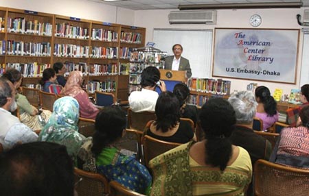 Mr. Mohiuddin Ahmed speaking at the book launch of American Voices.