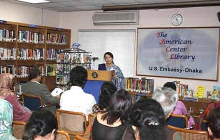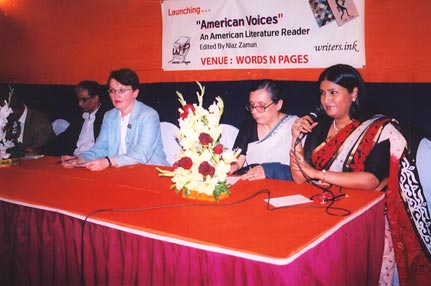 Dr Masud Mahmood's book on Emily Dickinson, Launched into Eternity, was launched at the American Center, Dhaka. Apart from Dr Mahmood, Ms Lauren Lovelace, Director of the American Center, Dr. Shawkat Hossain, Professor, Department of English, University of Dhaka, Professor Rebecca Haque, Chair, Department of English, University of Dhaka, Ms Parveen Elias, Cultural Specialist, American Center, and Dr Niaz Zaman of writers.ink also spoke on the occasion. Ms Zerin Alam, Associate Professor, Department of English, University of Dhaka, read two poems by Emily Dickinson.