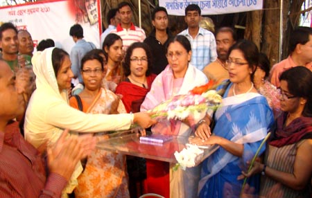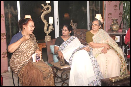 Ms Ruby Rahman flanked by Papree Rahman and Jharna Rahman, editors of Ganthagalpa