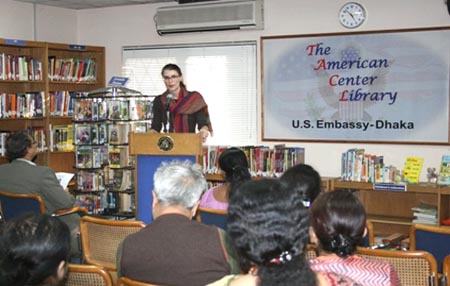 Caption: Ms Lauren Lovelace, Director, the American Center, speaking on the occasion